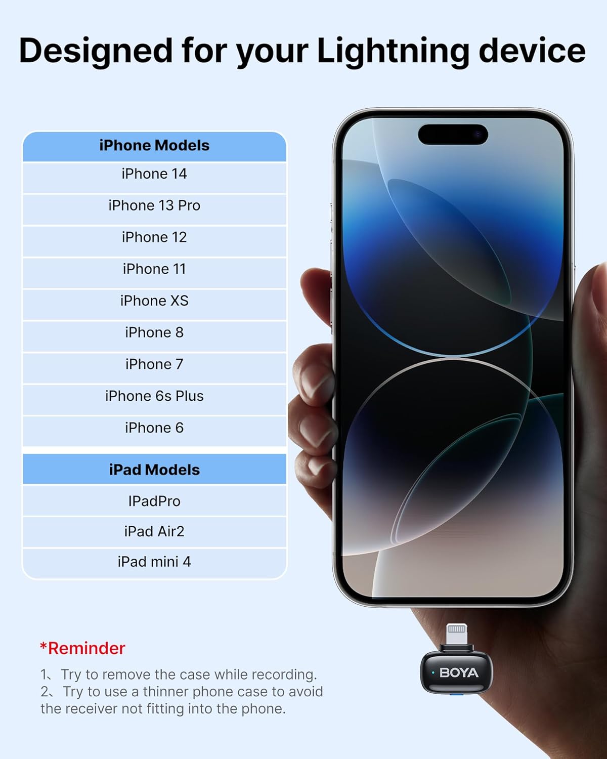 🎤 BOYA Mini Wireless Microphone (Lightning) – مايك لاسلكي صغير للآيفون، صوت صافي ومحتوى يبين فرق!