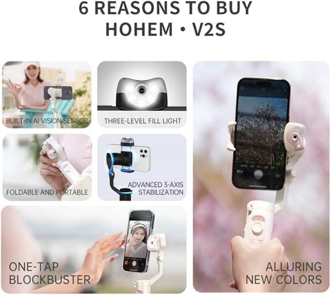 احصل على تصوير سلس واحترافي مع Hohem iSteady V2S، الجيمبل المصمم خصيصًا للهواتف الذكية والمحتوى المتحرك. يضمن لك هذا الجيمبل لقطات ناعمة وخالية من الاهتزاز مهما تحركت بسرعة.