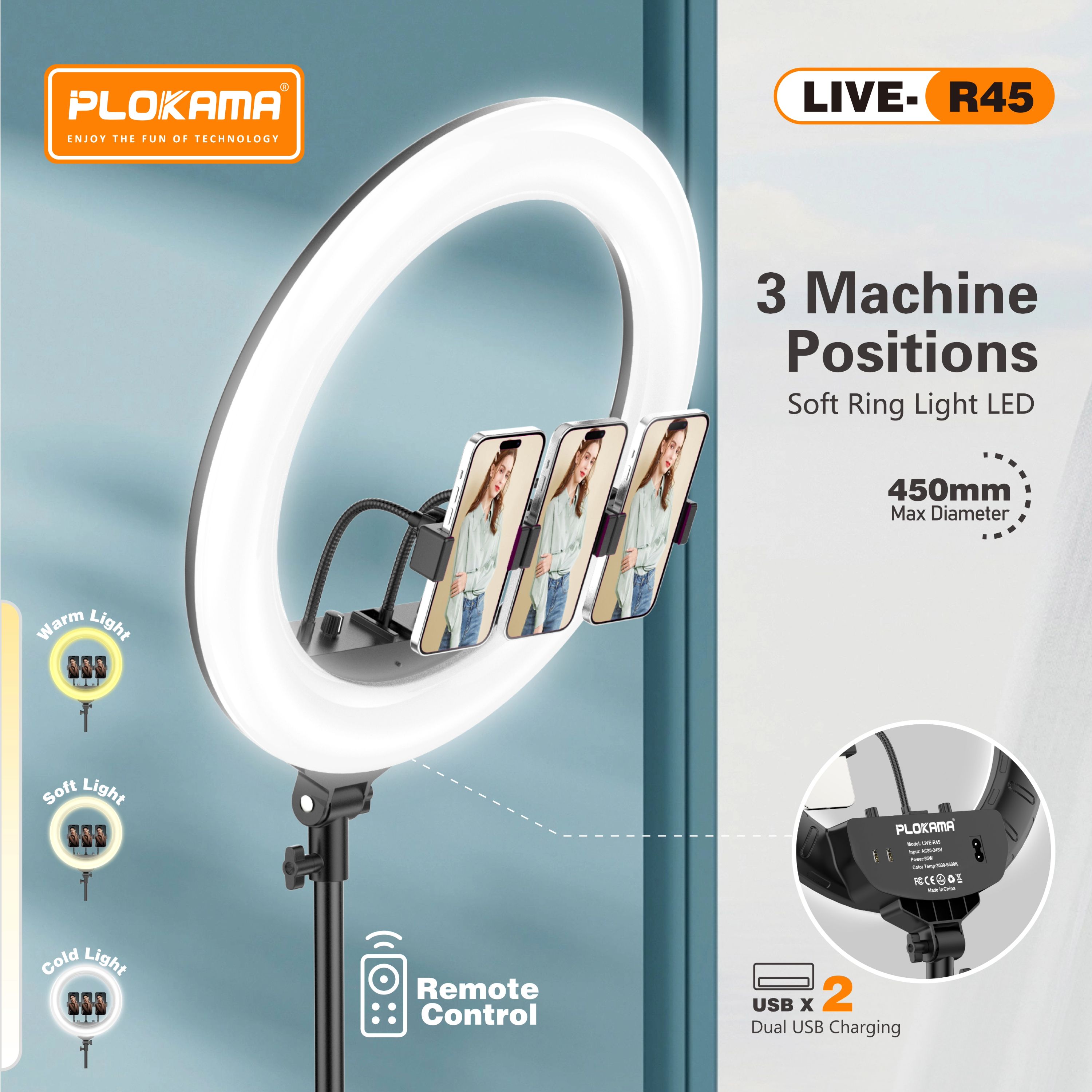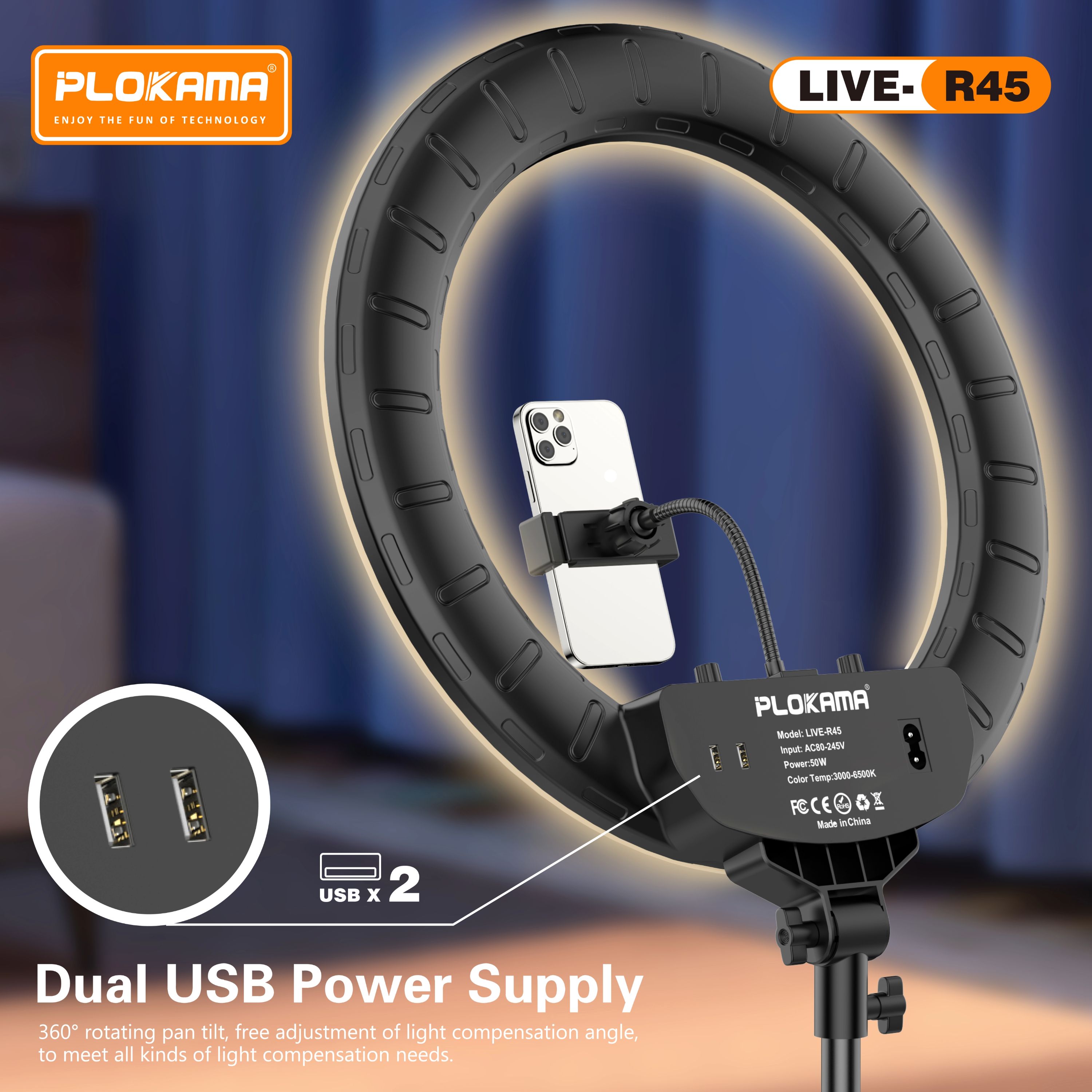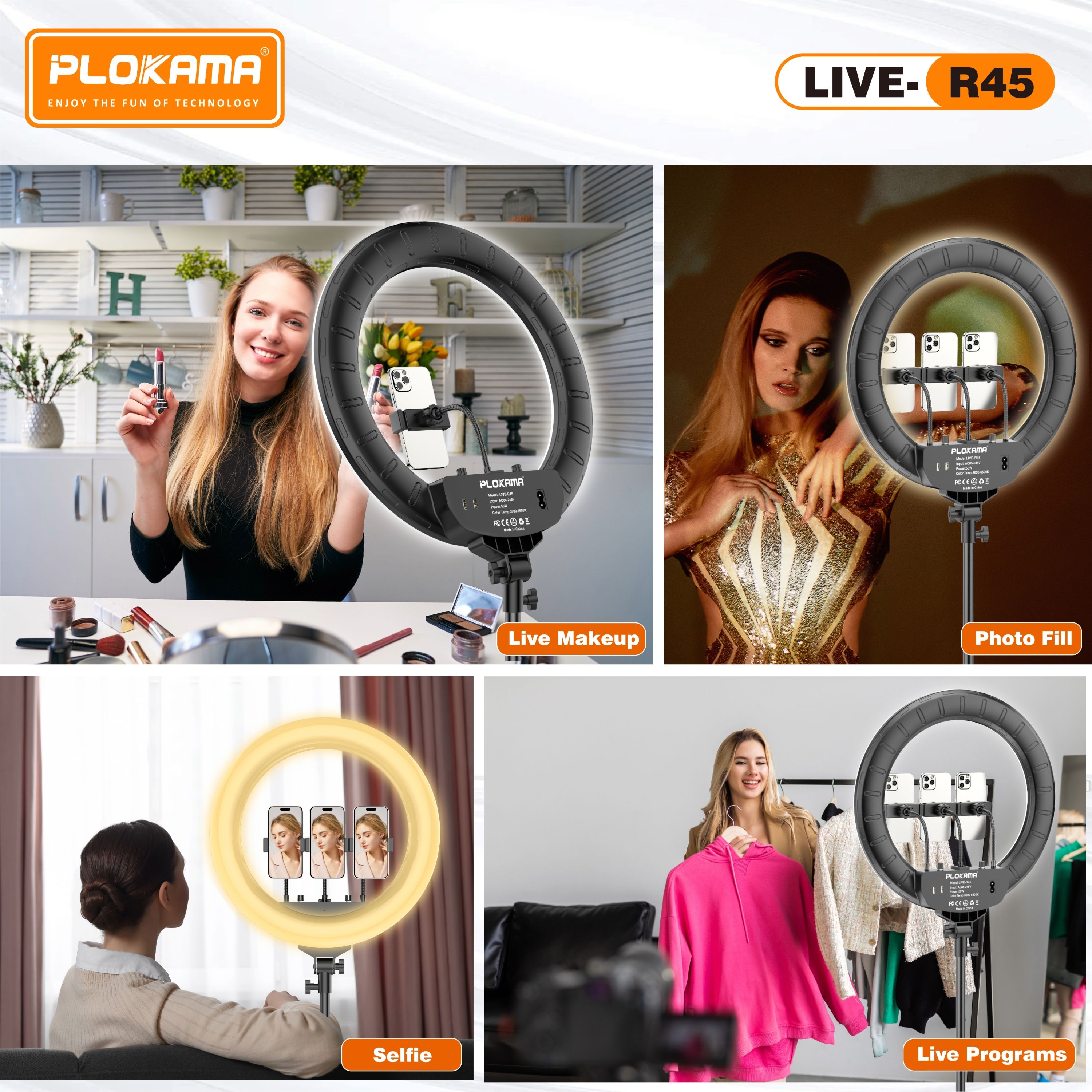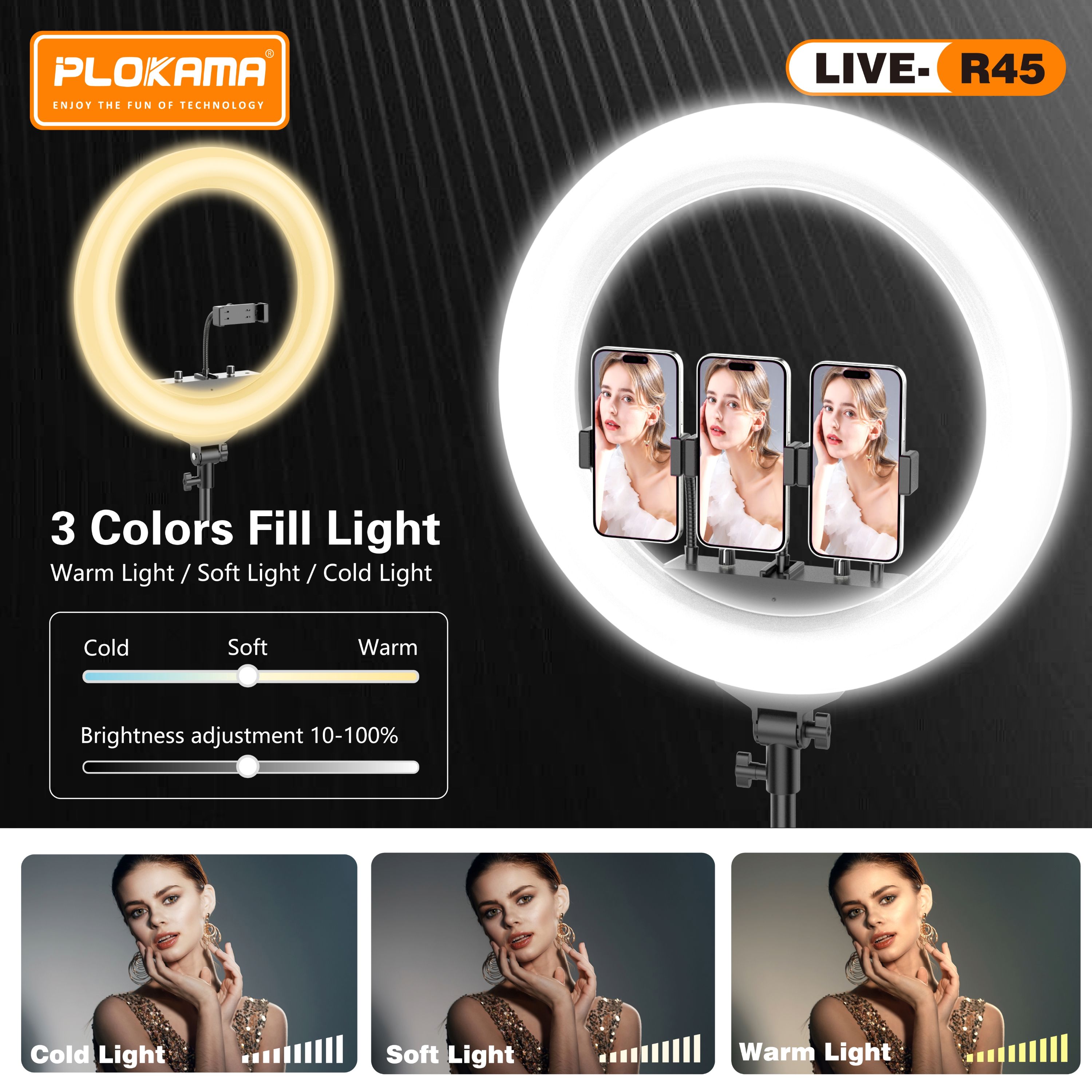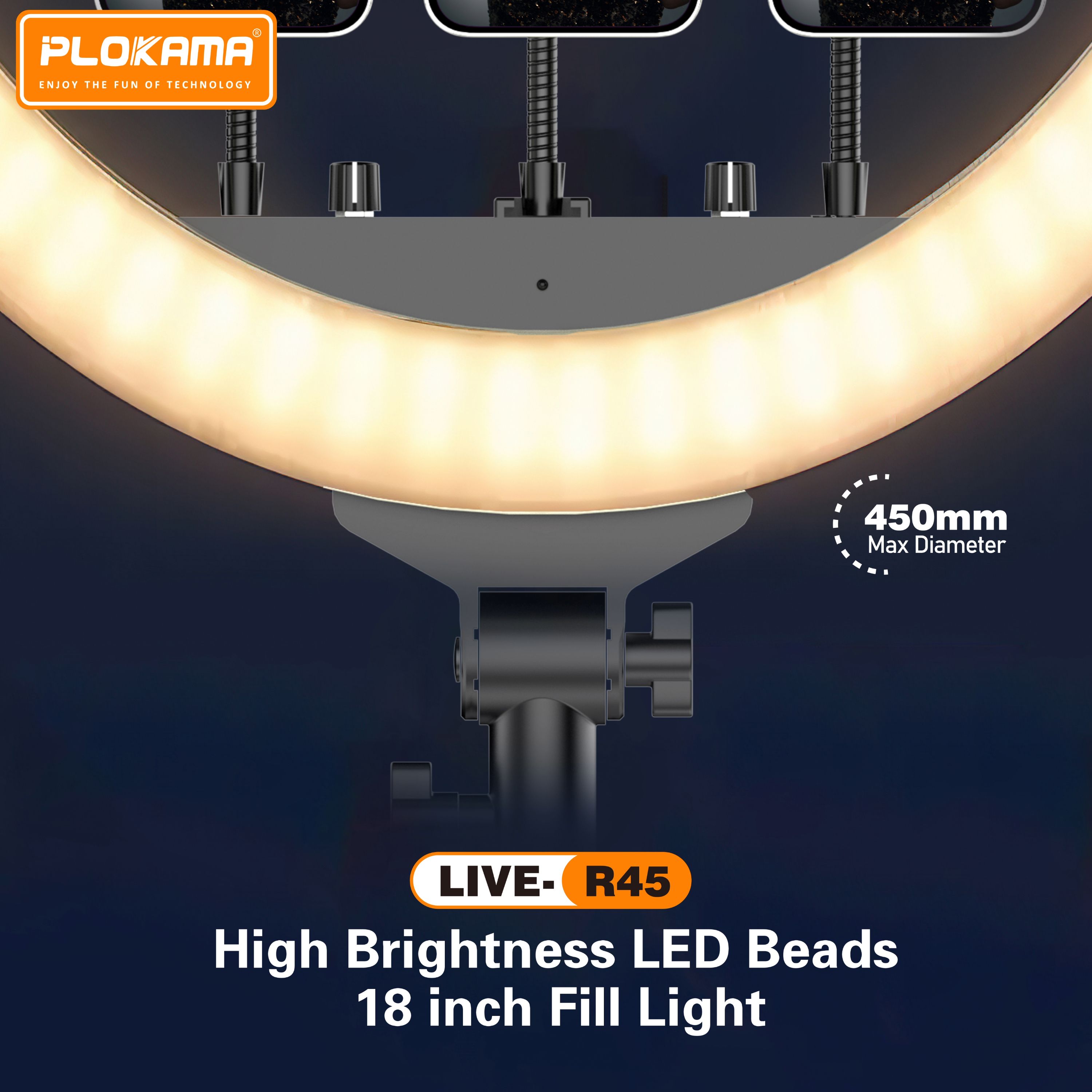 🎥 Plokama LIVE-R45 – إضاءة رينج ضخمة للمكياج والبث المباشر